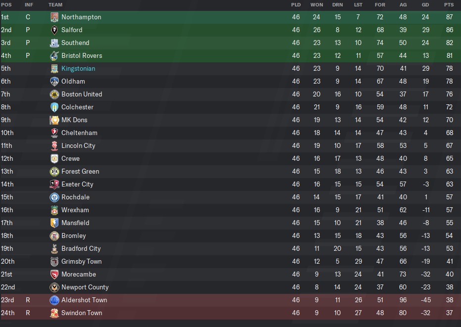 Aldershot Town finally had a dud of a season so I ignored them in the latter half of the season. I was a little sad then when I realized they had been relegated.