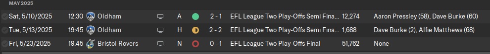 We had a good April – but that was not enough. We were stuck in the playoffs and would have to win a 2-leg semi-final and a neutral final at Wembley.