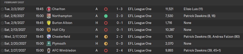 Another frustrating loss was the 3-3 draw away at Leyton Orient. Like the match against Crawley Town, Leyton Orient was down to 10 men but still came back from 3-1, including a 95th minute goal, to draw. I think it was at this point that I just wanted to see how truly horrifically this season would go and sort of went into a daze, going through the motions into November, pressing the space bar as quickly as I could . . . not really caring . . .