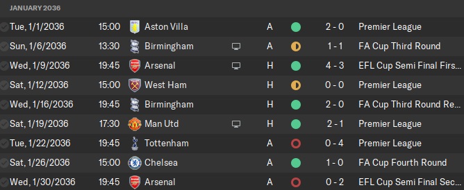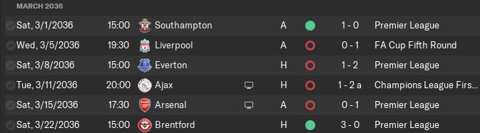 It was a very entertaining game against Arsenal at home in the Carabao Cup semi-final. Arsenal scored the first two goals but we struck back with two from Aubry near the end of the first half and beginning of the second. Then, Arsenal took back the lead in the 78th minute but a strike from Cathline evened the score again a few minutes later. Then, finally, in the last moments of the game, in the 96th minute, Maverick scored the go-ahead goal. The return leg wasn’t as fun as Son and Maverick were injured in the big-time home win against Manchester United. We lost 2-0 against Arsenal on the road, just short of our first Carabao Cup final. The shellacking at Tottenham was also the result of injuries, which made our FA Cup win against Chelsea all the more surprising.